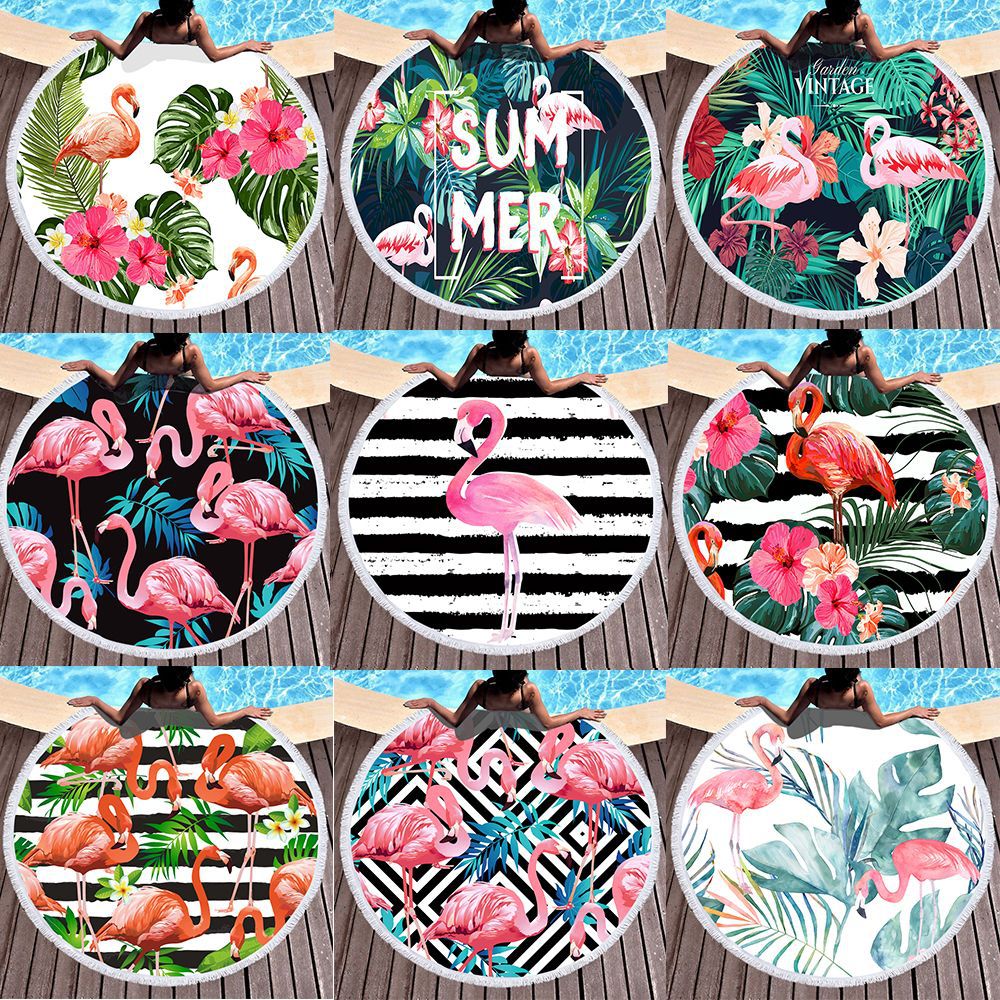 Microfiber flamingo round beach towel with tassel FL01 ,diamater:150cm, 59"