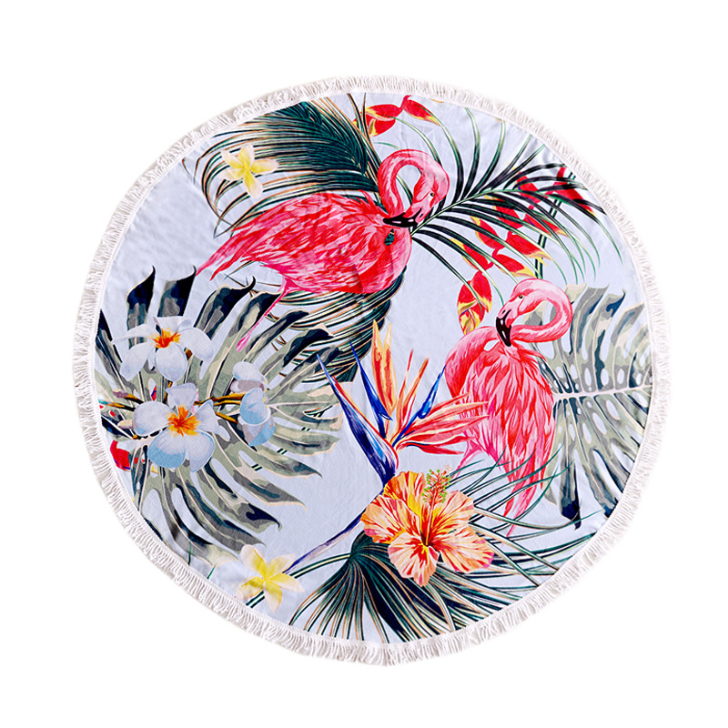 Microfiber flamingo round beach towel with tassel FL04 ,diamater:150cm, 59"