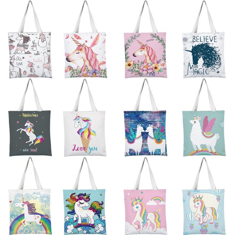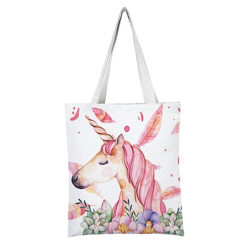 100% Polyester Canvas Printed Unicorns Tote UC01 38x42cm